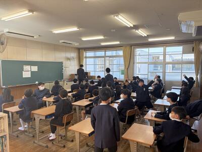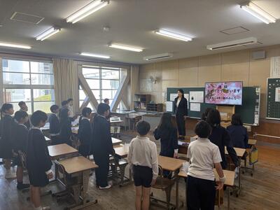 全校児童と一緒に歌を歌いました。