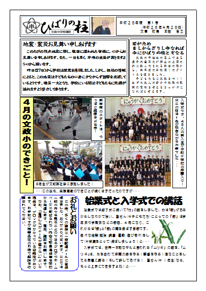★学校便り「文政小」→学校便り 3号.PDF(4/24発行)