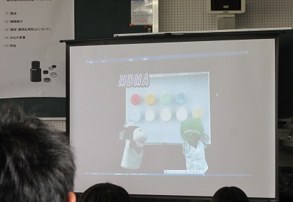 熊本県内や氷川警察署管内の薬物乱用の状況や、実際に補導、検挙した際のお話、薬物の種類や恐さなどについて話していただき、子どもたちは熱心に聞いていました。