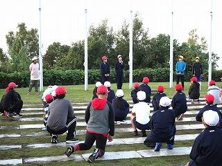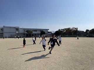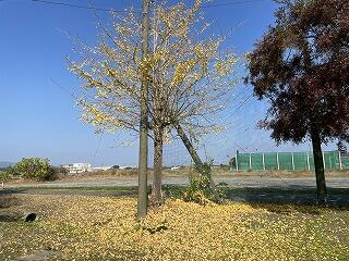 6年生が、鬼ごっこの合間に、イチョウの葉っぱを集めていました。