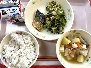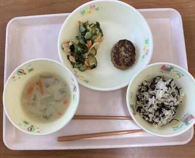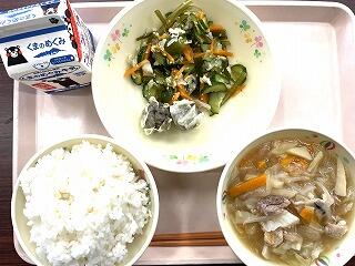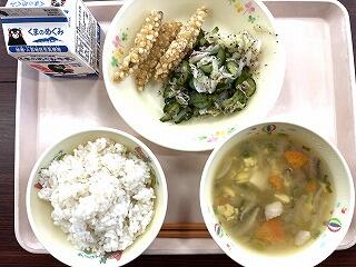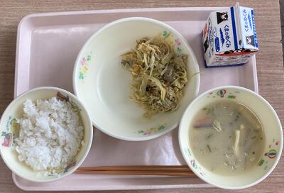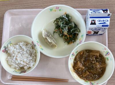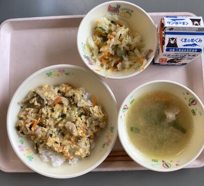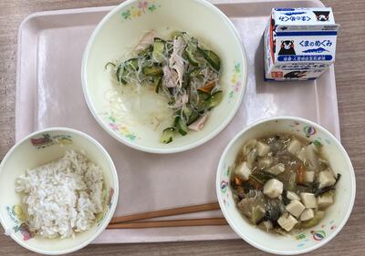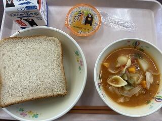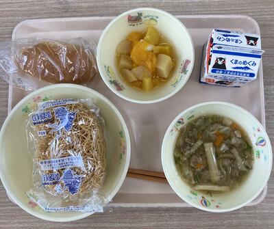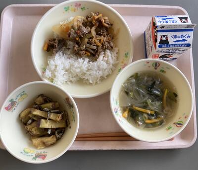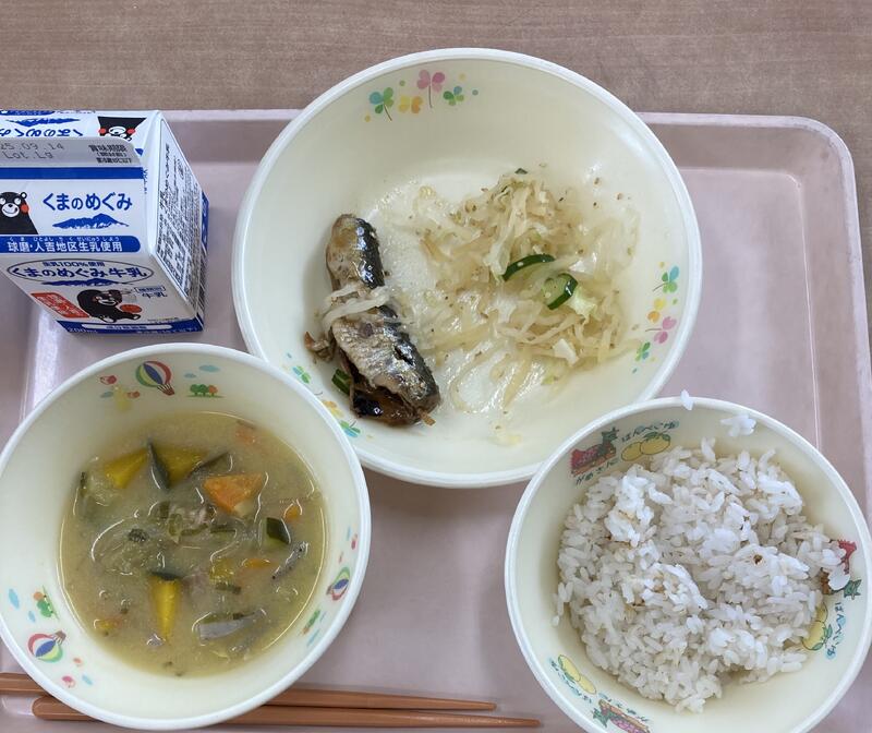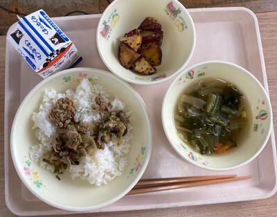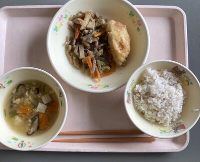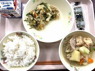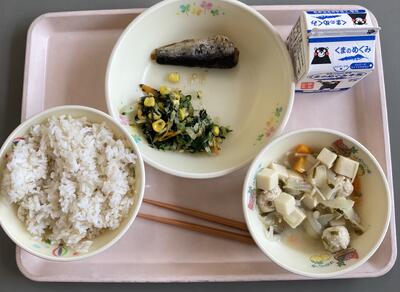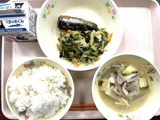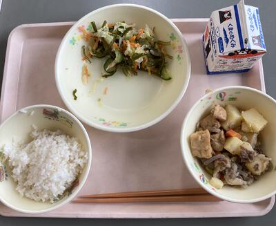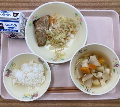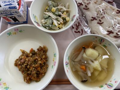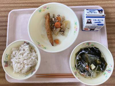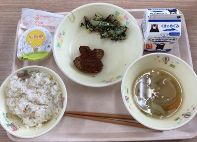 今日は食育の日です。人吉市球磨地方に伝わる、郷土料理の「つぼん汁」を食べました。受け継がれている味を大切にしたいですね。