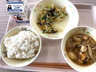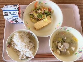 今日は食育の日です。人吉市球磨地方に伝わる、郷土料理の「つぼん汁」を食べました。受け継がれている味を大切にしたいですね。