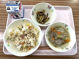 また、今月の給食目標は「食事の後始末をしよう」です。残菜の後始末や食器の集め方などを意識するよう声かけをしています。ご家庭でも後始末の仕方について考えられてみてください。