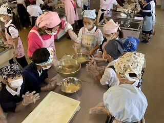 ふれあい農園でとれた「さつまいも」を使って、「いも大福」を作りました。