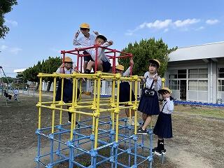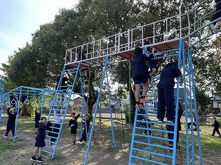 みんなで仲よくジャングルジム遊び喜ぶ・デレ