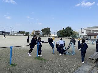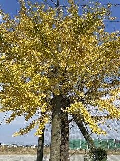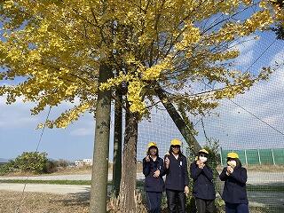 6年生が、鬼ごっこの合間に、イチョウの葉っぱを集めていました。