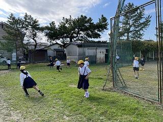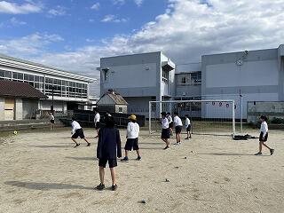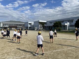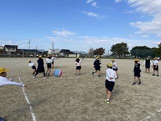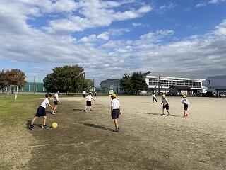 昼休み、みんなでドッジボールをしました。