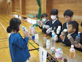 ペットボトルや紙コップにどんぐりを入れてマラカス完成!