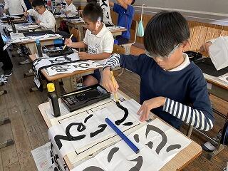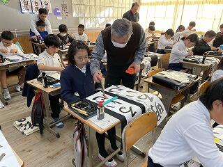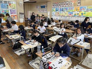 5,6時間目、書き初め展に向けた習字の学習をしました。