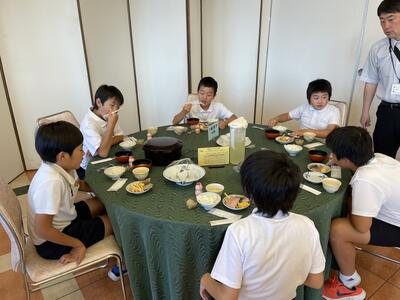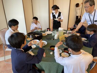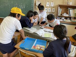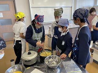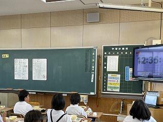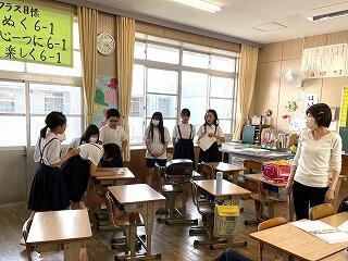 栄養教諭の先生がゲストティーチャーとなり、家庭科の学習をしました。6年生が、栄養のバランスを考えた献立を考えました。