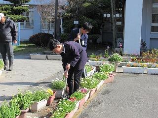 卒業式に向けて、どんな花を植えるか話し合いました。
