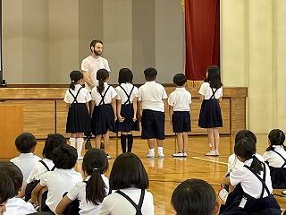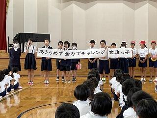 ジェシー先生、文政小の合い言葉「やればできる!」です