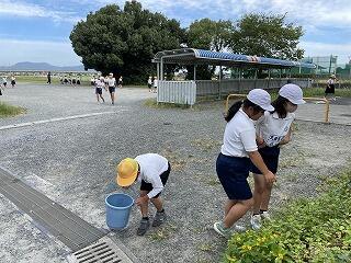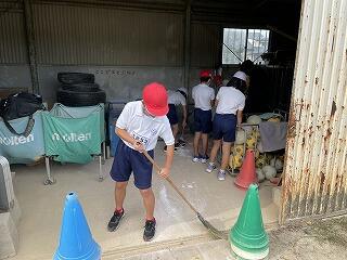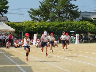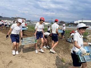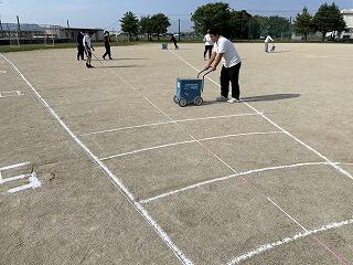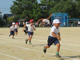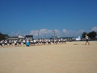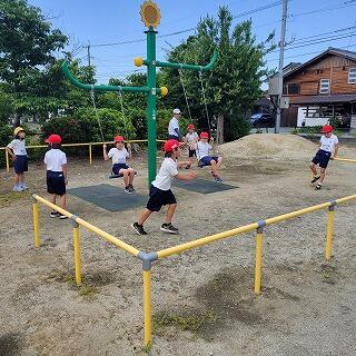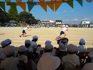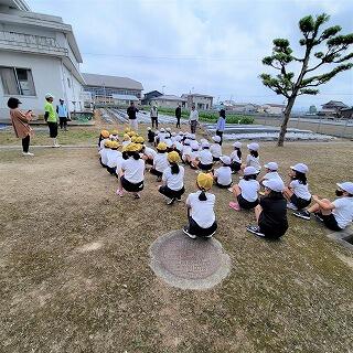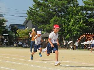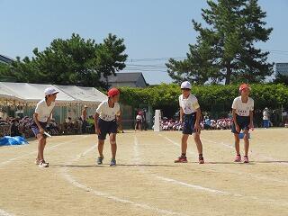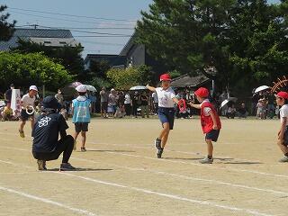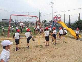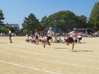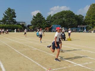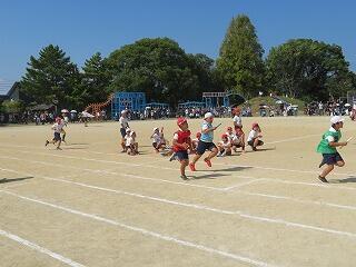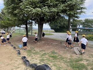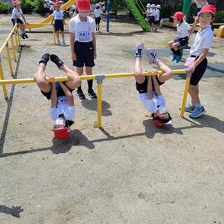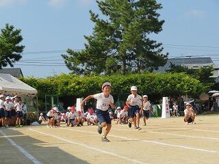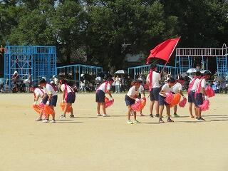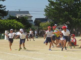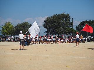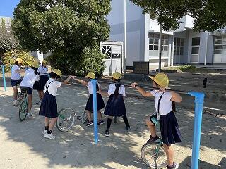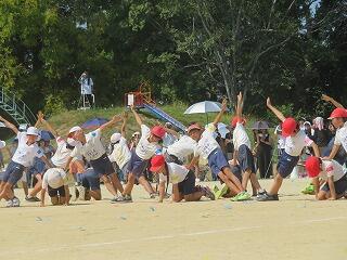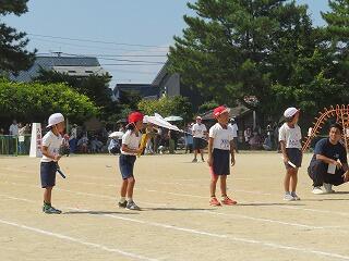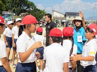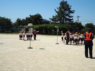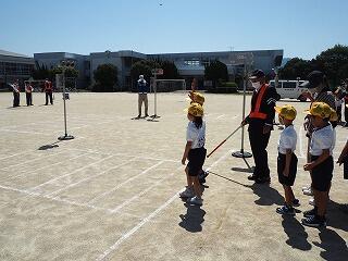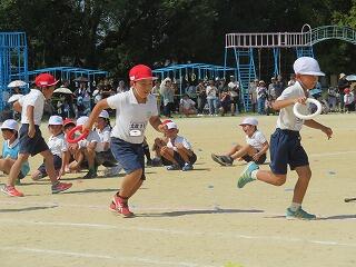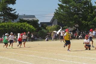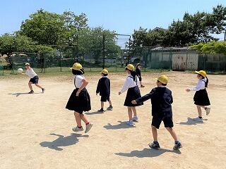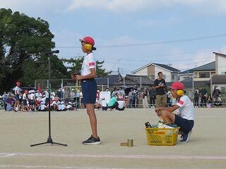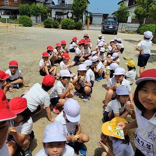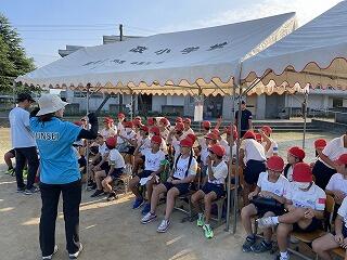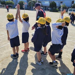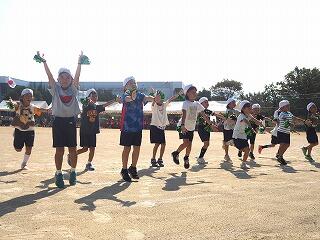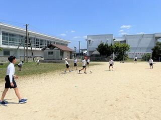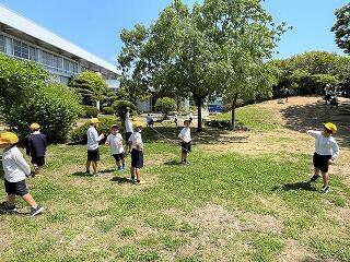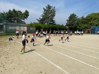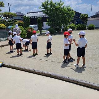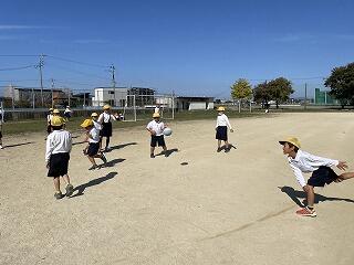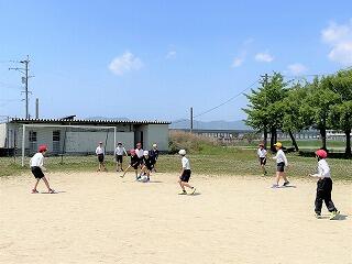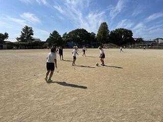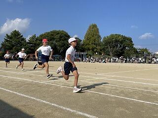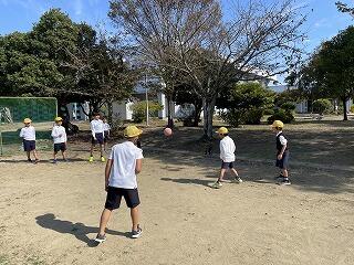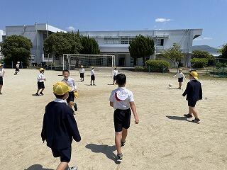 2年生が、ボールを蹴るゲーム「たまごわりサッカー」をしました。