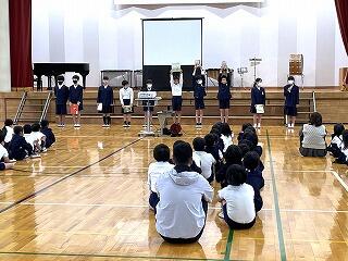 卒業証書授与式のあと、在校生の5年生と「わかれの言葉」を言いました。(呼びかけ)