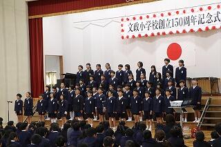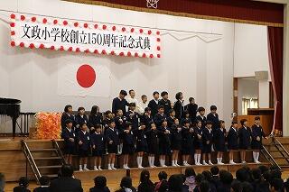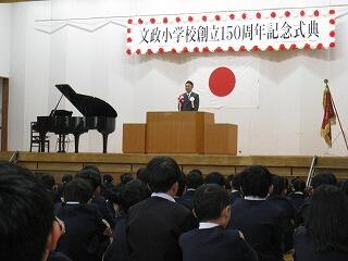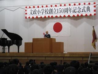 「文政小の子供たちの活躍を期待してください。先生方をいつまでも応援しています。」