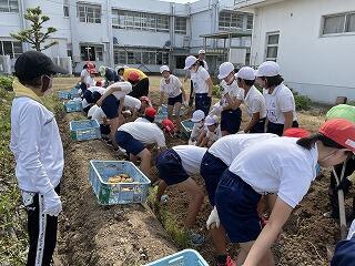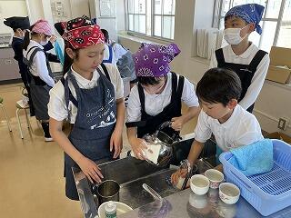 生活科の時間、2年生が「いもだんごづくり」をしました。