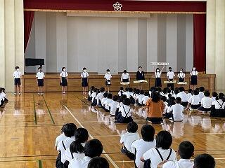 1~6年生の代表児童が、3学期がんばったことや、これからの目標などを発表しました。