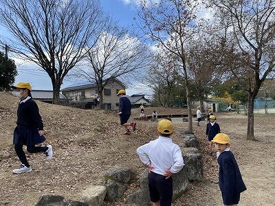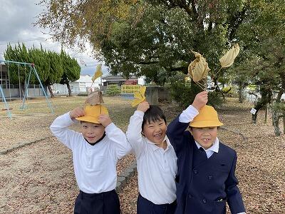 落ち葉を手に、楽しそうに遊んでいたので声をかけました。