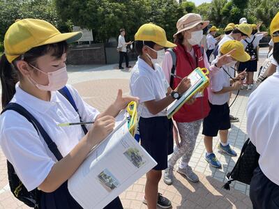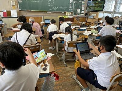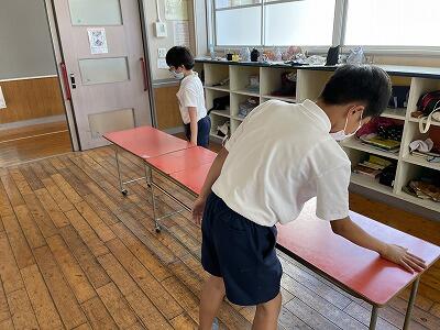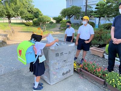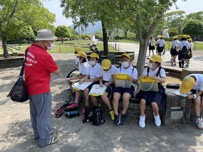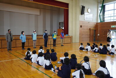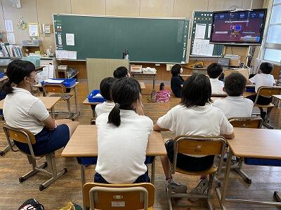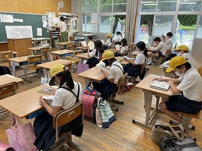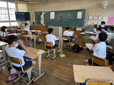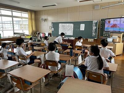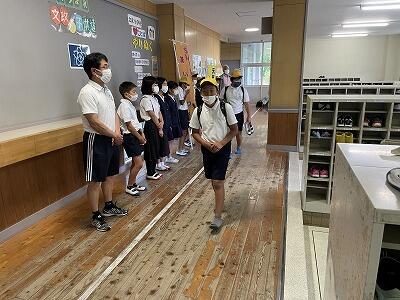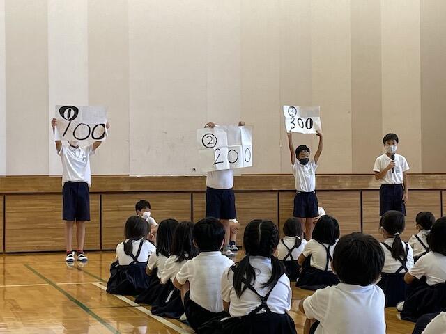 ・保健委員会「給食時間に、暑さ指数を放送しています。外で遊ぶときは、帽子をかぶり、水筒を持って行きましょう。」