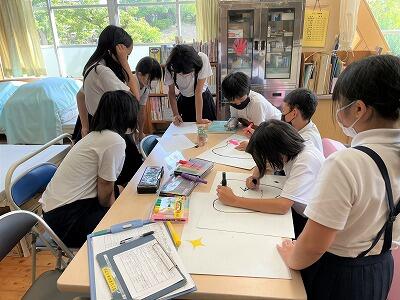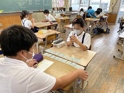 色、形を英語で伝える学習をしていました。