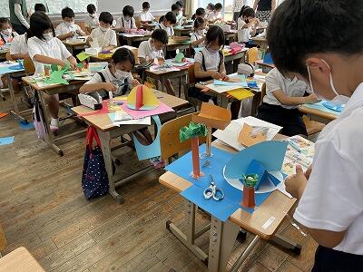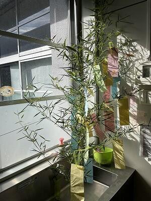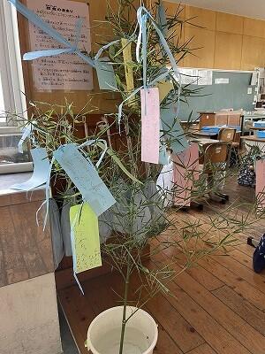 1年生教室に、七夕の笹を飾っています。