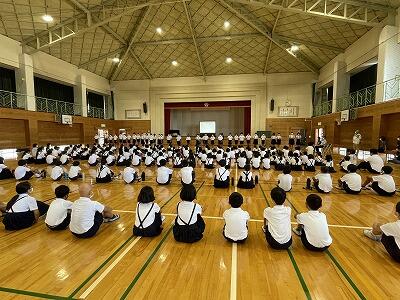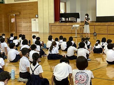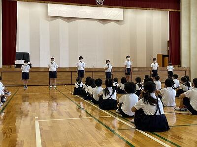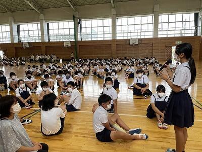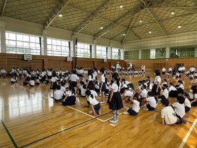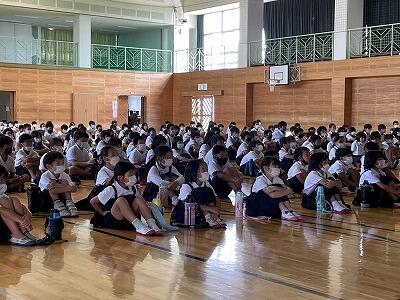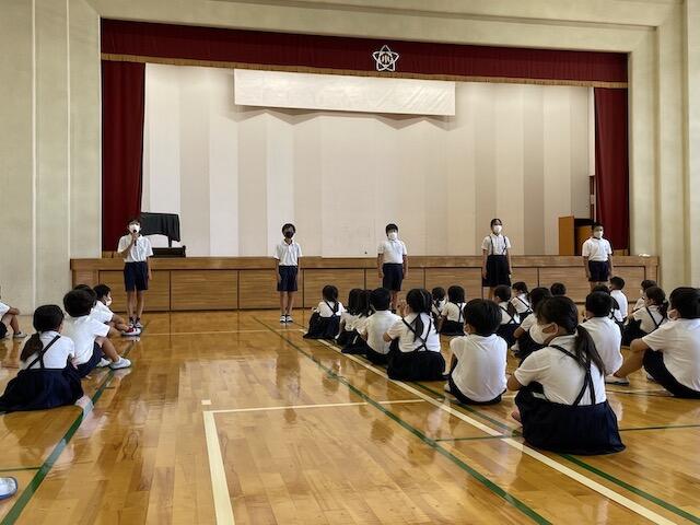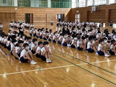 7月の児童集会を、体育館でしました。