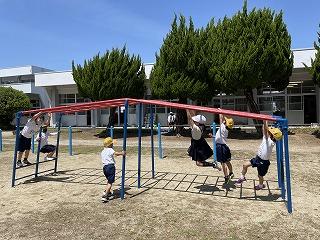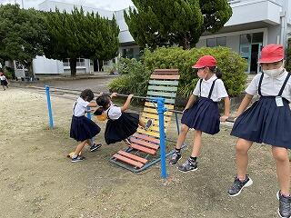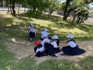 休み時間になると、3,4年生はベランダに出て日向ぼっこをしています。楽器の練習、友達とのおしゃべりなど、楽しそうでした。