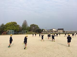 今日は暖かくて、たくさんの児童が外で遊んでいました。