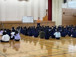 冬休みのくらしについての話や、漢字・計算大会の表彰などありました。