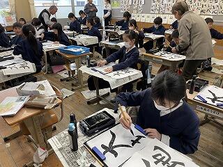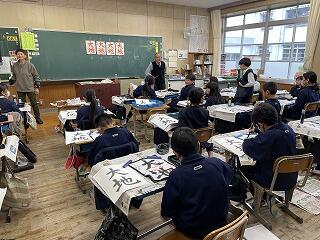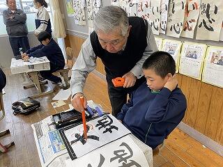 文政っ子応援協議会の学習部会、福原先生と外浦先生に習字の指導をしていただきました。