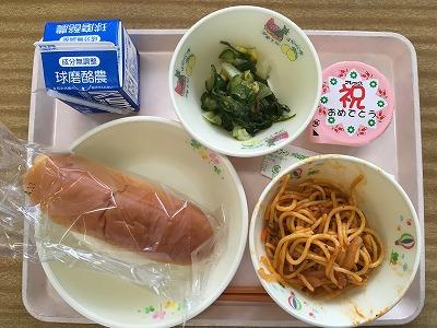 ・ミルクパン、スパゲティナポリタン、海藻サラダ、デザート