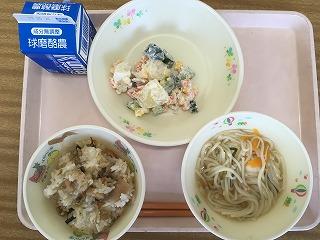 ・ミルクパン、スパゲティナポリタン、海藻サラダ、デザート