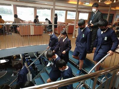 フェリーのデッキで「カモメにエサをやる」ためでした。