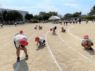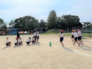 前半が1部で1,2,3年生がダンスやかけっこ、リレーをします。1部と2部の間に全校での応援合戦を行います。
