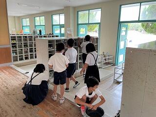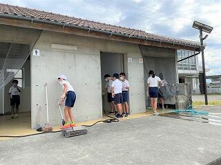 1校時、全校みんなで運動会の片付け、掃除をしました。