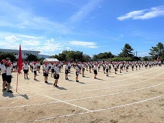 1年生から6年生まで集まって、運動会全体練習をしました。