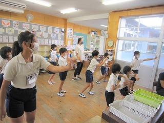 ※体育館の2階は暑くて、熱中症予防のため教室でしました。