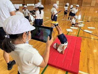 客観的に自分の動きが確認でき、意欲的なマット運動ができました。