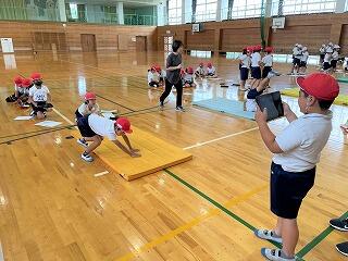 「いいよ!」と声をかけて、マット運動の技が始まりました。