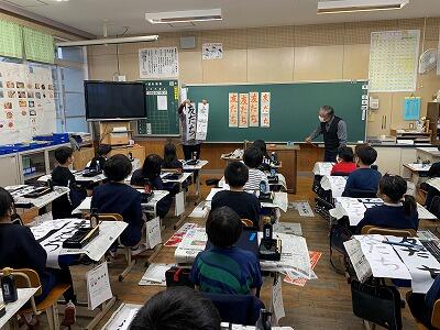 文政っ子応援協議会の方が2名(福原先生、外浦先生)来校され、書写指導をしてくださいました。