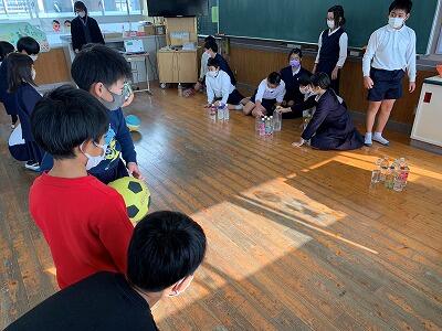 ペットボトルボーリングは、低学年の子供たちに大人気でした。