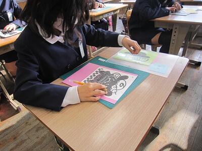 お手本と子供たちの作品を比べて、きれいな字を書くポイントをわかりやすく教えてくださいました。
