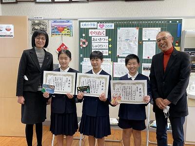 文政小みんなで取り組んでいる「あいさつ」「しゅくだい」「あそぶ」についてのお話がありました。