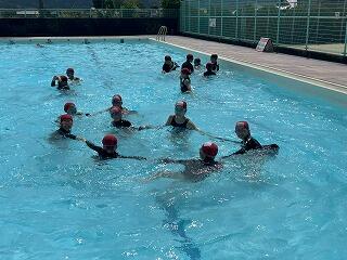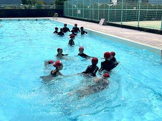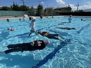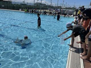 服を着た時の泳ぎにくさを実感したり、溺れたときの対処法など学んだりしました。