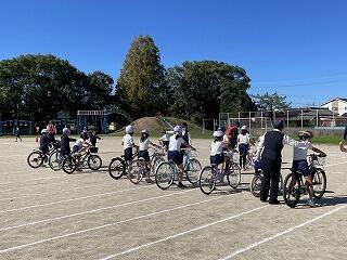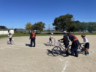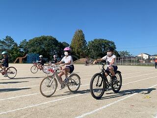 2時間目に3年1組、3時間目に3年2組が交通安全教室に参加して、交通ルールの理解と、運転技能を磨きました。