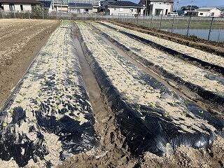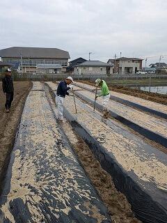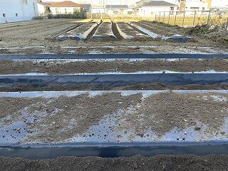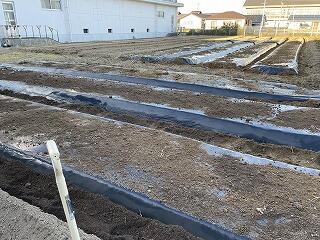 昨日は畑を耕してもらい、今日はマルチを張ってもらいました。
