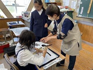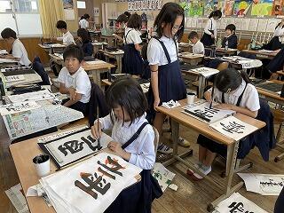 2,3時間目、文政っ子応援協議会の福原先生、外浦先生が来校され、習字の指導をしてくださいました。