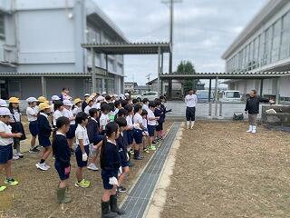 最初に学校で、文政校区の歴史、農業水利施設の役割など、学びました。