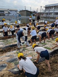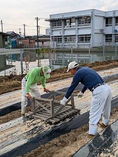子どもたちは野菜の苗を植えるだけですが、その前にたくさんの作業をしていただいています。