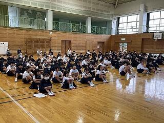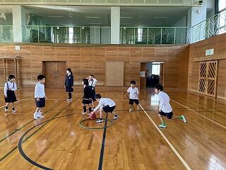 今日は、5年生と2年生が体育館で鬼ごっこをしました。